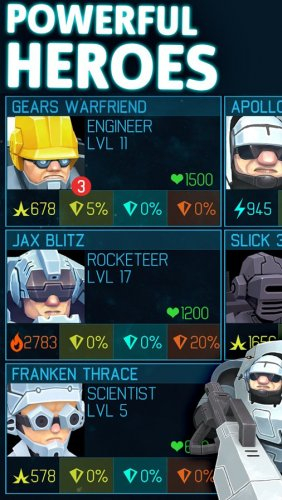 Как вы уже поняли - это игра в стиле башен, где нужно контролировать весь путь врагов, не давая им уничтожить ваш командный центр. Но, кроме башен, вас еще ждут несколько супергероев, которых можно передвигать по карте, а также улучшать.