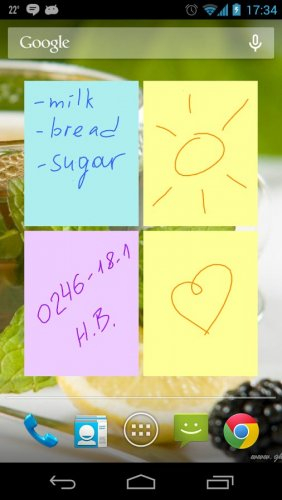 Теперь вы можете в любой момент создать заметки, записать важные дела и встречи. Полученные заметки можно разместить на рабочем столе, таким образом, обезопасив себя, что вы забудете выполнить важные дела. Программа работает на различных девайсах, с разным разрешением экрана.