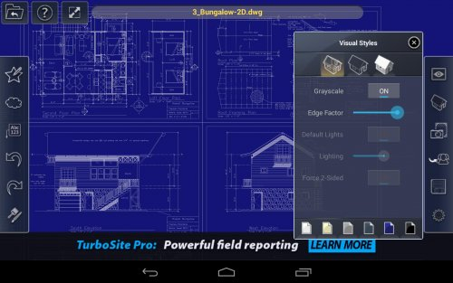 dwg и .dxf файлов на вашем планшете - TurboViewer X. Все популярные САПР позволяют сохранять свои 2D и 3D чертежи в формате .dwg, теперь их можно открыть и посмотреть на платформе Android. Выбранный чертеж вы можете оборачивать и смотреть с разных сторон, масштабировать, выбрать какие объекты показывать на схеме.