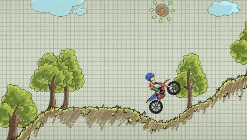 В игре Doodle Moto, главный герой будет кататься по трассе, которая нарисована на тетрадном листке.