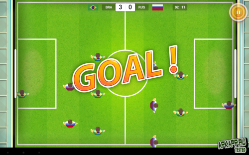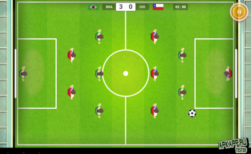 Вы можете выбрать команду своей страны и выступать за нее, побеждая соперников турнирной таблицы. Благодаря специальному режиму состязания для двух игроков, вы можете играть в настольный футбол на одном устройстве вместе с своим товарищем. А если вам просто хочется развлечься можно попробовать свободный матч.