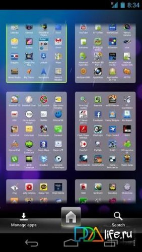Утилита прекрасно распределяет значки и организует пространство на рабочем столе. Имеется уникальная функция копирования виджетов и ярлыков, из предыдущих установленных лаунчеров.