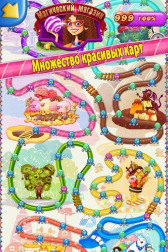 Игрушка "Сладкий путь: Sweetland trip" - это увлекательное путешествие в мир вкусностей, выполненное по типу три в ряд.
