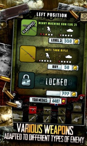 Стреляйте в наступающих врагов - просто прикоснитесь к ним, пока не появится специальный прицел. Когда вы уничтожите всю наступательную группу, можно переключить автомат на более дальний отряд. Пройдя несколько уровней, у вас откроется новое оружие, которое можно установить на блокпост. Покупайте минометы, противотанковые пулеметы и другой арсенал. У вас появится несколько прицелов, с помощью которых атаковать наступление будет намного проще.