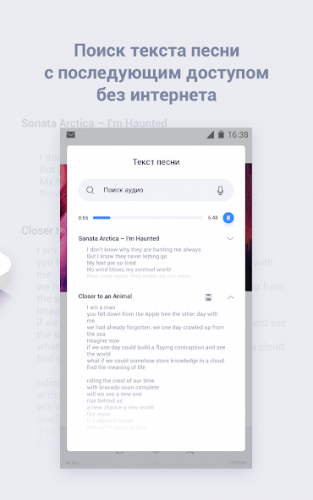 Кроме того, плеер интегрируется с социальной сетью ВКонтакте, что делает его идеальным выбором для тех, кто привык слушать музыку из этого источника. Приложение позволяет легко находить и воспроизводить любимые треки прямо из вашего профиля ВК.