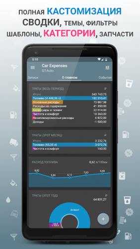 Благодаря приложению "Авто Расходы - Car Expenses Ma", пользователи платформы андроид могут вести учет топлива своего автомобиля.