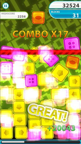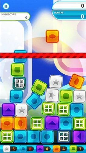 Увлекательная игра Push Panic, в которой нужно связывать разноцветные блоки и не допускать, чтобы они пересекали красную черту.