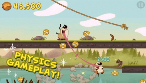 Вы должны собирать монетки с изображениями костей, перепрыгивать через платформы и разбивать разные штуки. Язык собак имеет эластичность, он может натягиваться и возвращаться в первобытный вид, используйте это свойство, чтобы проходить уровни. Вы натягиваете собаку, и она начинает пружинить. Чтобы собрать монетки внизу вы можете просто натянуть и держать. Когда вам нужно перепрыгнуть тогда в конце платформы натягивайте и отпускайте и оба ваших друга полетят на другую площадку.