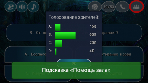 Вам нужно правильно отвечать на поставленные вопросы, и при необходимости пользоваться помощью. В данной версии, помимо трех стандартных, можно воспользоваться сменой вопроса.
