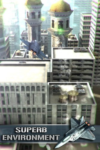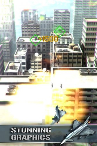 Выберите один из нескольких реактивных самолетов и отправляйтесь на задание. Вам нужно стрелять и бомбить обозначенные позиции на земле, а также сбивать их в воздухе. Вам стоит быть осторожным, так как миссия проходит в городе, где расположены многоэтажки, так что придется облетать их.