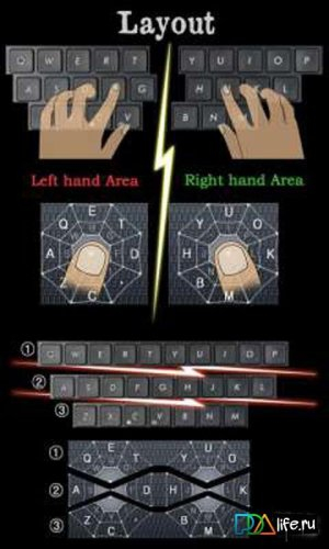 Здесь вы найдете клавиатуру в виде игрового джойстика, в котором буквы расположены в виде паутины. В отличие от простой клавиатуры, все значки выглядят высокими, а скорость ввода текста увеличивается в разы.