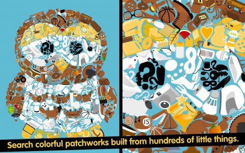 В данной игре, не нужно искать цельные изображения. Согласно задумке разработчиков, вам нужно сложить разнообразные мозаики, чтобы получить определённую фигуру.
