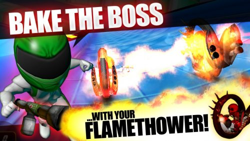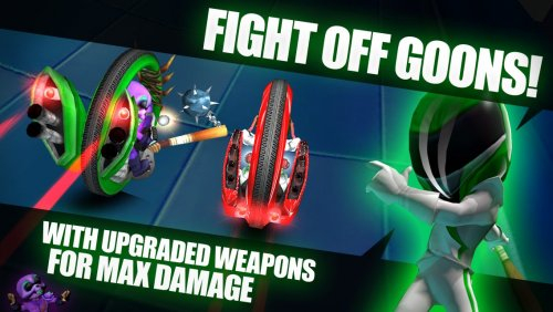 “ГуроБой 3D” — это еще одна игра с акселерометром, в которой вы должны наклонять свое устройство в разные стороны, чтобы управлять одноколесным автомобилем. Кроме этого существуют ряд дополнительных кнопок. Подобравшись с левого края противника вы сможете нанести удар с помощью специальной клавиши в правой части экрана, а переключать оружия можно кнопкой в левой нижнем угле дисплея.