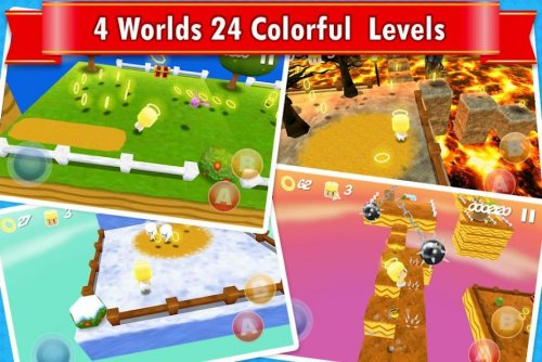 Angel in Danger — это великолепный 3D платформер на андроид. В котором маленький принц будет бродить по трехмерной платформе, собирать кольца и сражаться с соперниками — наскакивая им на голову. Вас ждет большое путешествия через 4 красивых мира, в 24 уровнях и дополнительных, где ждет сражение с боссом.
