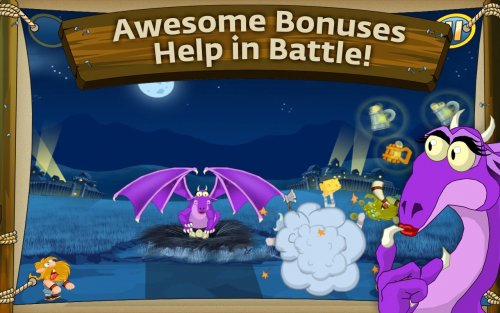 Так как дракон “Дранк Викингс” попался интеллигентный, он не хочет воевать и старается препятствовать нападениям. Используйте ураганы, смерчи, дышите пламенем и всячески отгоняйте своих оппонентов, пока они не придут в себя.
