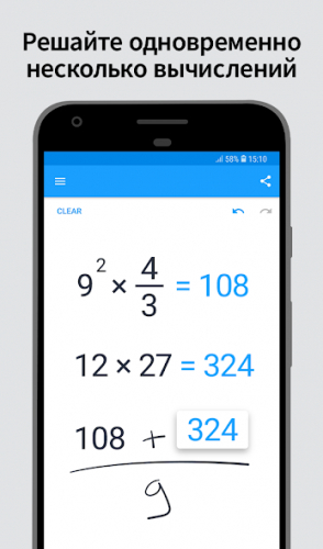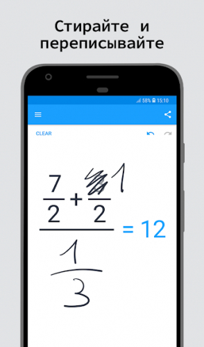 Нужно взять стилус или пальцем написать требуемое уравнение, после чего программа распознает его и проведет расчеты! Чтобы убрать неверно обозначенную цифру, достаточно воспользоваться жестом вычеркивания.