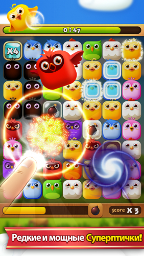 Birzzle Fever - это интересная головоломка три в ряд, в которой вам нужно искать одинаковых птичек на игровым поле.