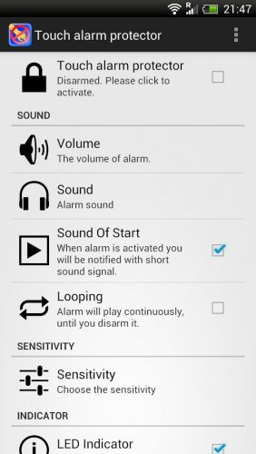 Защитная сигнализация касания - будет интересно всем пользователям, которые заботятся о защите своей информации.