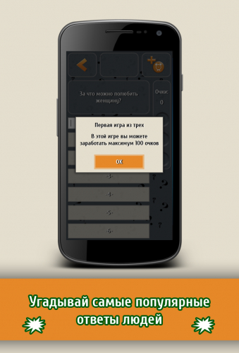 В игре нужно хорошо подумать и ответить на поставленный вопрос. По всем предложенным заданиям ранее отвечали сотни людей. Вам нужно в течение 30 секунд найти правильный ответ, который был дан большинством опрашиваемых.