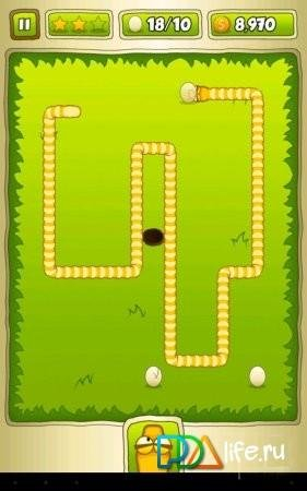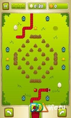 Пройдите увлекательные уровни в 5 мирах, где вам потребуется накормить вашего героя куриными яйцами. Собирая добычу она будет увеличиваться, тем самым усложняя траекторию движения, чтобы не врезаться в свой хвост или в стену. Змею ждут приятные бонусы в виде фруктов и звезд, которые будут давать вам очки.