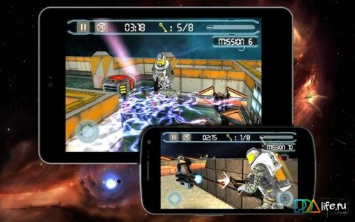 У вас ограниченное время, чтобы найти выход из ловушки и отыскать все алмазы. Если вы не успеете, гравитационный портал закроется. Вам придется уничтожать мины, которые при приближении взрываются, а также летающие квадрокоптеры, что ведут прицельный огонь.