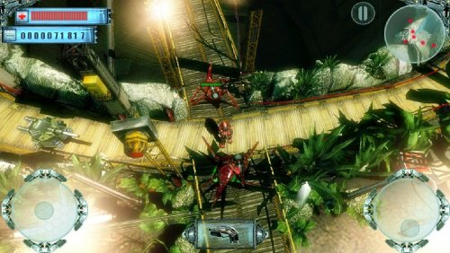 Нужно отметить замечательную графику “Мелтдаун он Марс”, так как игра изначально разработана и оптимизирована для планшетов на Tegra. Управления осуществляется с помощью двух джойстиков, один отвечает за движение персонажа, а другой за направление огонь.