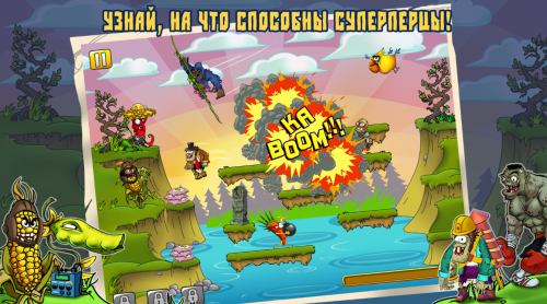 Как только был собран урожай овощей, зомби решили напасть на ферму. Передвигаясь и прыгая по платформам, они незаметно подкрадываются, пока овощи веселятся. Недолго зомби оставались незаметными — на защиту урожая и семян выставлены лучшие бойцы: подсолнух, помидор, тыква, баклажан и другие. Стреляйте семечками, бросайте помидорами и подрывайте тыкву — делайте всё, чтобы остановить зомби.