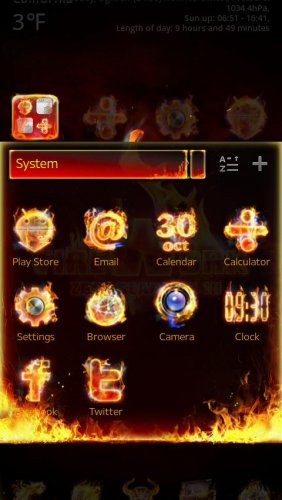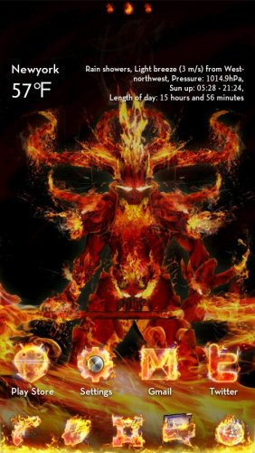 После установки приложения, вы увидите лист металла, при прикосновении с которым происходит небольшое возгорание, и идут искры. Следите за языками пламени и пользуйтесь тремя основными функциями: Разблокировка, Телефон и Сообщения.