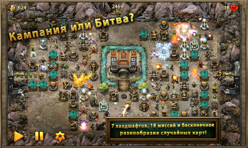 Игроку открывается большое количество настроек, которые смогут разнообразить геимплей. Можно выбрать 32 уровня сложности, изменить рельеф и тип башен.