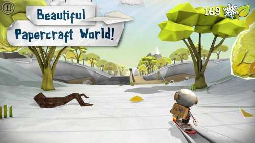 Все деревья, лепестки, снежинки, даже белочки и медведи будут бумажные, не говоря уже о главное герое и его сноуборде. Прокатитесь с горки, добравшись как можно дальше и собрав максимальное количество листков и снежинок.