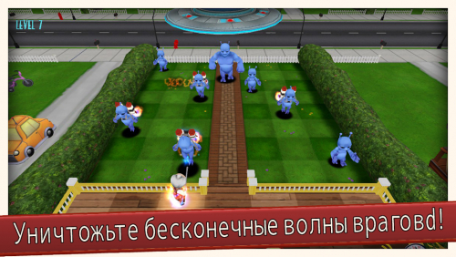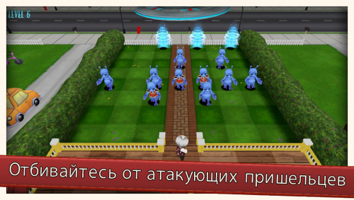 Не дайте пришельцам добраться до вашего дома, перемещайтесь по клетках и стреляйте в пришельцев пока они еще на газоне. Чтобы дедушка выстрелил, Вам нужно сделать два действия. Сначала переместите его на нужную клетку напротив инопланетянина и повторно нажмите на него для стрельбы. Вас ждут разные виды инопланетян. Некоторым достаточно будет одного выстрела, а некоторым (в защитном костюме), понадобится несколько выстрелов. Улучшайте свое оружие в специальном магазине, чтобы одним выстрелом уничтожить всех пришельцев, независимо от их защиты.