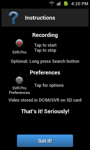 Она превратит ваш смартфон или планшет в инструмент настоящего агента. Нажмите на ярлык приложения и начнется незаметная запись на заднюю или переднюю камеру, даже тогда, когда телефон будет заблокирован. Таким же нажатием на ярлык, вы останавливаете запись.