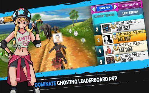 Перед началом игры, пользователю предложат наиболее удобный формат управления. Выбрав акселерометр, вам придется наклонять планшет в разные стороны для объезда преград. Установив езду на кнопках, у вас появится специальный свайп-джойстик, а также две кнопки — прыжка и пригибания головы.