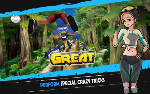 В этой игре вам нужно объезжать пеньки деревьев, перепрыгивать через бревна, а также собирать монеты и энергию.