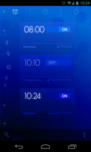 Каждый может найти свою мелодию из списка по типу, а если вам не подходит ни один звук, можно установить свой рингтон. Настройка времени на будильнике революционная, такой вы не увидите ни в одном приложении. Вам нужно провести пальцем вниз, чтобы выбрать время из столбика времени. Чтобы изменить минуты, достаточно также протянуть пальцем или тапать вверху или внизу экрана.
