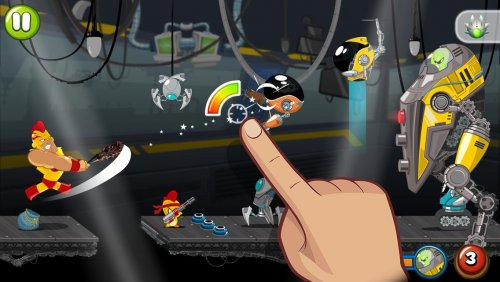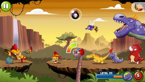 Семья цыплят вынуждена бежать от наступающих плохих парней, но платформа по которой они передвигались разломалась. Теперь семья разделилась на две части и главный герой должен отбить противников. Нажмите на врага и подождите, когда шкала подымится до максимального уровня. Отпускайте палец — главный герой нанесет мощный удар битой и яблоко или другой фрукт попадет у врага. Враги будут двигаться, вам также за ними нужно перемещать свой палец, чтобы ваш снаряд попал у противника. Циплятко Бой может стрелять не только одиночными яблоками, а еще стрелять рассыпными снарядами в виде дроби с помощью винограда.
