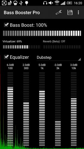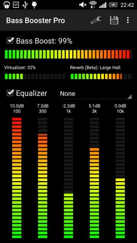 Приложения для меломанов, которые не довольны качеством звучания музыки на своем устройстве - Bass Booster Pro.