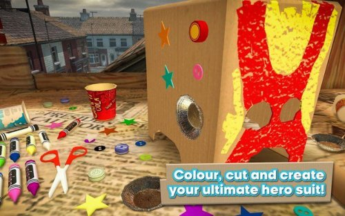 В этой игре вы будете фантазировать вместе с главным героем, который разместился в своем домике в дереве. Помните, как вы фантазировали, когда были маленькими. Вы игрались и что-то придумывали, как будто кто-то на вас нападает, а вы отбиваетесь или защищаете мир от врагов. Так и здесь, главный персонаж должен создать себе костюм, эмблему и перчатку из найденных картонных коробок.