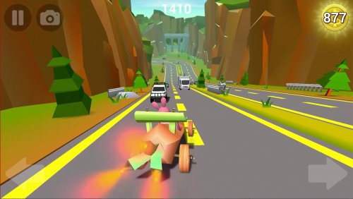 Суть игры состоит в том, чтобы как можно дальше добраться на своем джипе или другом автомобиле. Вы должны нажимать на стороны экрана, чтобы объезжать деревья, камни, перескакивать железную дорогу и входить на незанятые участки автодороги. За каждую попытку поставить новый рекорд вы будете зарабатывать немного денег, насобирав необходимое количество монет, вы сможете купить себе новое авто.