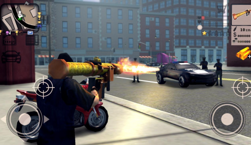 Как и в оригинальной GTA, ваш персонаж может бегать по улицам и бить прохожих руками или разными предметами, вплоть до стрельбы из пистолета. Но не забывайте, что за всеми вашими действиями могут следить полицейские, что находятся по поблизости. Они сразу объявят вас в розыск и у вас появиться звезда, с того времени на вас начнут охотиться полицейские. Все копы теперь смогут использовать оружие, чтобы вас остановить, они будут пытаться застрелить вас.