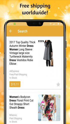 Вам так хотелось купить себе новые очки или квадрокоптер, но вам не нравятся ассортимент и цены на товары в вашем городе. Не отчаивайтесь, большинство продавцов затариваются в китайских магазинах и делают большую накрутку на товарах. Воспользовавшись этим приложением, вы сможете найти товар по дешевым ценам из Китая. Для этого вам необходимо воспользоваться специальным поиском и указать тот, который вы хотите найти.
