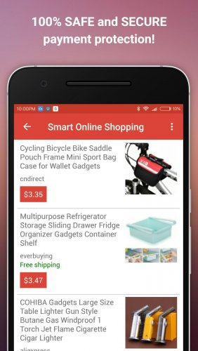 На вашем экране моментально приложения выведет результаты из разных китайских магазинов, по самым приятным ценам, это позволит вам сэкономить свой бюджет на покупке. После того как вы найдете нужную продукцию и подходящей цене, вы перейдете на официальный сайт магазина, где и завершите заказ.