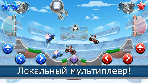 Побеждайте в уровнях забив своему противнику три мяча, за что вы получите денежный бонус. Тратьте заработанные деньги в специальном спине, где нужно покупать билет и вращать призы. В зависимости от удачи, вам будут выпадать новые машины или инструменты для улучшения уже имеющихся. Играйте Drive Ahead! Sports в одиночку или попросите своих друзей сыграть вместе с вами на одном устройстве. Но для того, чтобы открыть этот режим, вам необходимо подзаработать немного деньжат.