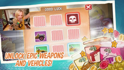 Преодолевайте препятствия на машинке, пытаясь добраться до финиша и наблюдайте за комментариями популярных видеоблогеров из Youtube. Вас ждет очень много интересных уровней, где вы не только будет стрелять по врагам, но и еще преодолевать препятствия в виде бревен, досок и других, что появляться на вашей дороге. У вас будет ограниченный запас бензина, на котором вы должны добраться к финишу. Если вам повезет, и вы найдете канистру бензина, это улучшит ваши шансы на успех. Собирайте бензин и монетки, за которые вы сможете открыть новые автомобили или купить новое оружие, чтобы уничтожать врагов.