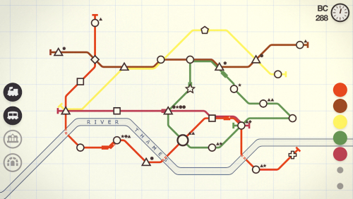 Mini Metro — интересная головоломка, где нужно проводить линии между точками, которые символизируют станции и линии метрополитена.