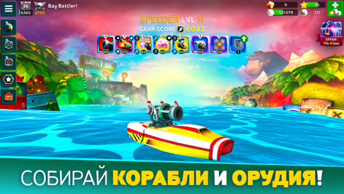 Выигрывайте в боях, становясь лучшим игроком, который победит всех врагов и зарабатывайте максимальное количество очков и денег. Очки вам нужны для повышения своего уровня, а деньги — для улучшения или покупки новых кораблей. Вы сможете улучшить вооружение, турбину или другие установленные запчасти, что позволит вам стать еще более эффективным в бою. Погрузитесь в мир морских сражений с Battle Bay от Rovio и покажите всем, на что вы способны! Присоединяйтесь к сражениям и станьте лучшим капитаном на воде!