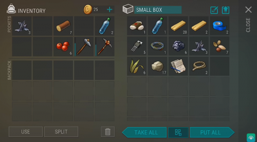 Используя топор, вы сможете уже срубить все деревья на вашем участке и использовать материал для постройки верстака или стен своего дома. Киркой вы сможете разбить большие камни и добыть железо из них, чтобы изготовить себе оружие.