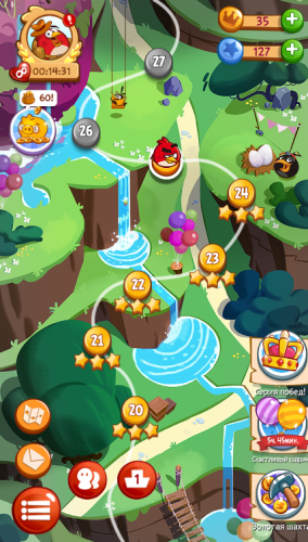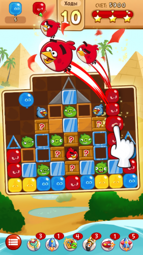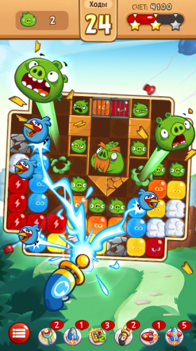 На прохождения одного уровня в Энгри Бердс Бласт дают определенное количество ходов, за которые выполнить задание, так что вам придется искать комбинации, где можно лопнуть как можно больше злых персонажей.
