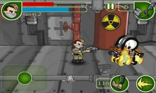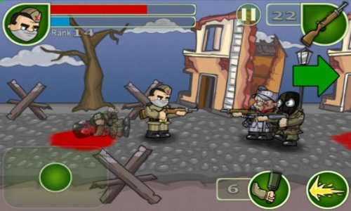 Сначала у вас имеется только молоток, которым вы будете бить врагов, но по мере проходимости уровней у вас появится пистолет, винтовка и другое оружия. Подбирайте боеприпасы и подкрепляйте свое здоровье с помощью аптечек, которые можно получить от авиации.