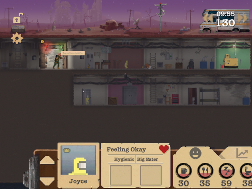 Не забывайте, что под вашим контролем настоящие живые люди, они хотят есть, пить, спать, ходить в туалет и иногда мыться и стираться. Потому вам следует следить за потребностями людей и давать им то, что они хотят. Но в пост-апокалиптическом мире еда очень ценна, потому вам следует обеспечить их едой. Отправляйте на разведку, на поиски новых ресурсов и еды. Поставьте несколько крысоловок и попытайтесь поймать крысу, она сможет стать вкусным обедом.